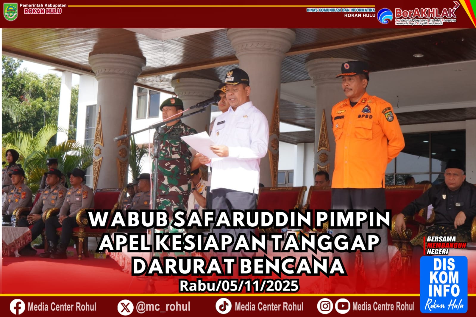 Rohul – Apel kesiapan dalam rangka tanggap darurat bencana hidrometeorologi yang diselenggarakan secara serentak di seluruh Indonesia di halaman Kantor Bupati Rokan Hulu dipimpin oleh wakil Bupati Rokan Hulu H. Syafarudin Poti, SH, MM, Rabu (5/11/2025)
