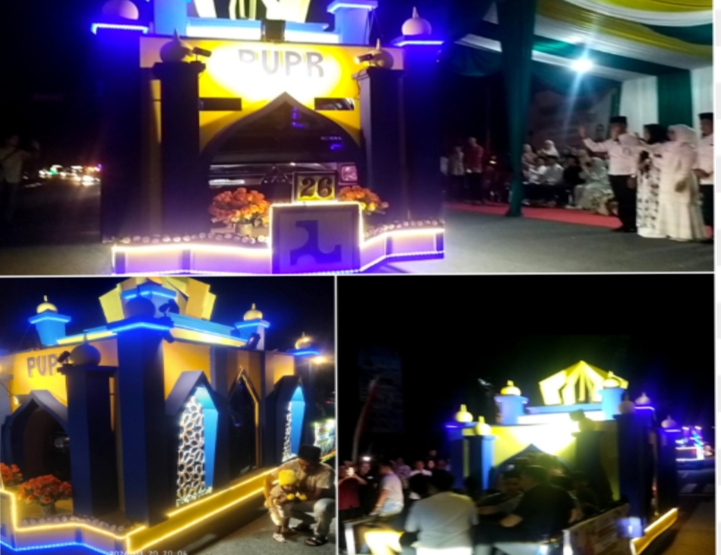 Bangkinang – Suasana malam takbiran menyambut Hari Raya Idul Fitri 1 Syawal 1447 H/2026 M di Kota Bangkinang berlangsung meriah, penuh gema takbir dan kebersamaan. Di tengah semarak tersebut, Keluarga Besar Dinas Pekerjaan Umum dan Penataan Ruang (PUPR) Kabupaten Kampar di bawah kepemimpinan Plt Kadis, Afrudin AMGA, ST, MT, turut ambil bagian dalam memeriahkan takbiran keliling, Jumat malam (20/3/26).