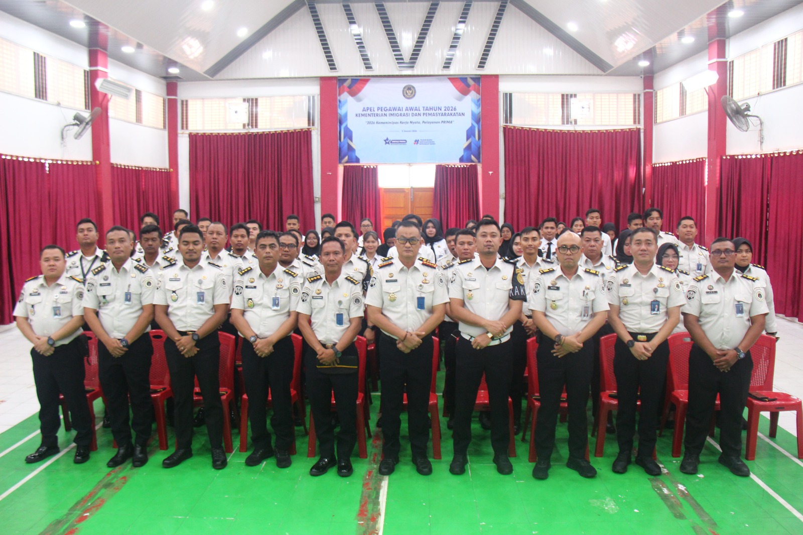Mengusung tema “2026 Kemenimipas Kerja Nyata, Pelayanan PRIMA”, apel pegawai awal tahun ini menjadi momentum penting dalam mengawali pelaksanaan tugas dan fungsi Kemenimipas di tahun 2026, sekaligus sebagai sarana untuk menyatukan komitmen dan semangat seluruh aparatur dalam memberikan pelayanan terbaik kepada masyarakat.