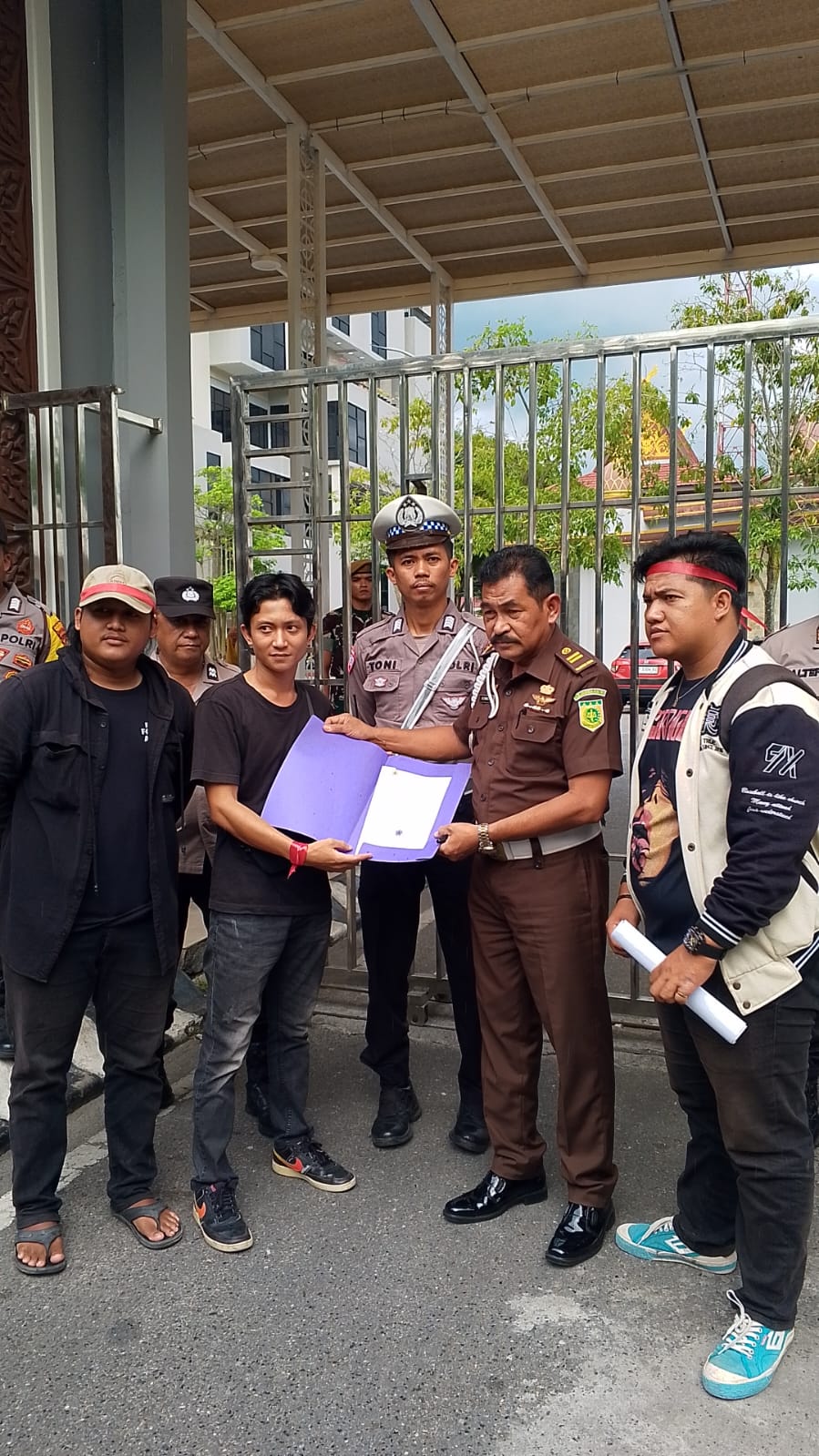 “Tuntutan kami terima dan akan kami masukan ke Kejati Riau dan kami laporkan ke Kajati Riau,”
