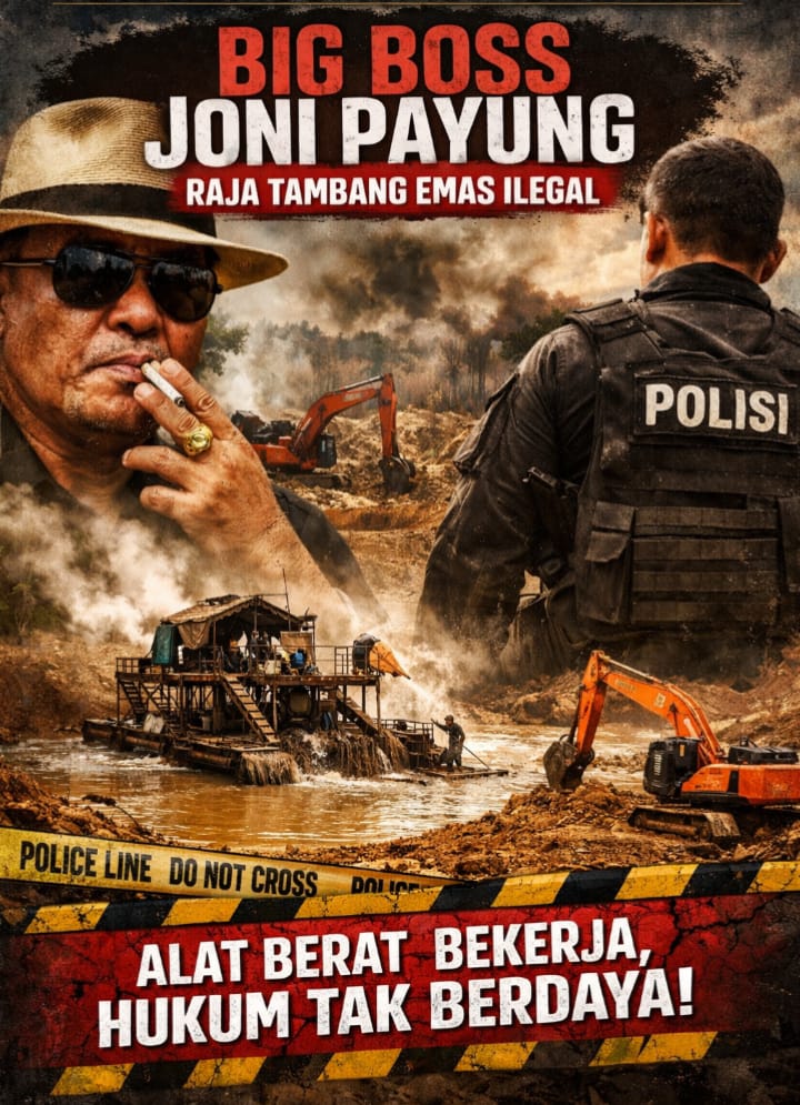 Kuansing – Skandal Pertambangan Emas Tanpa Izin (PETI) di wilayah Trans Singingi, Kecamatan Singingi, Kabupaten Kuantan Singingi kian memperlihatkan wajah buruk penegakan hukum. Nama Joni Payung kembali mencuat sebagai Big Boss besar yang diduga kuat menguasai, membiayai, sekaligus mengendalikan operasi tambang emas ilegal di Desa Pasir Mas, Desa Air Mas, hingga Desa Sungai Keranji. Sabtu 24 Januari 2026.