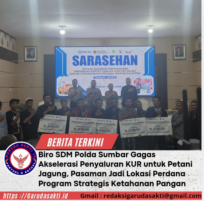 Pasaman – Komitmen Polri dalam mendukung program swasembada pangan nasional terus diwujudkan melalui langkah nyata di daerah. Kali ini, Biro SDM Polda Sumatera Barat bersama Satgas Ketahanan Pangan menggagas percepatan penyaluran Kredit Usaha Rakyat (KUR) Bank BRI kepada petani jagung binaan Polri sebagai bagian dari implementasi kerja sama antara Mabes Polri dan Bank Himbara.