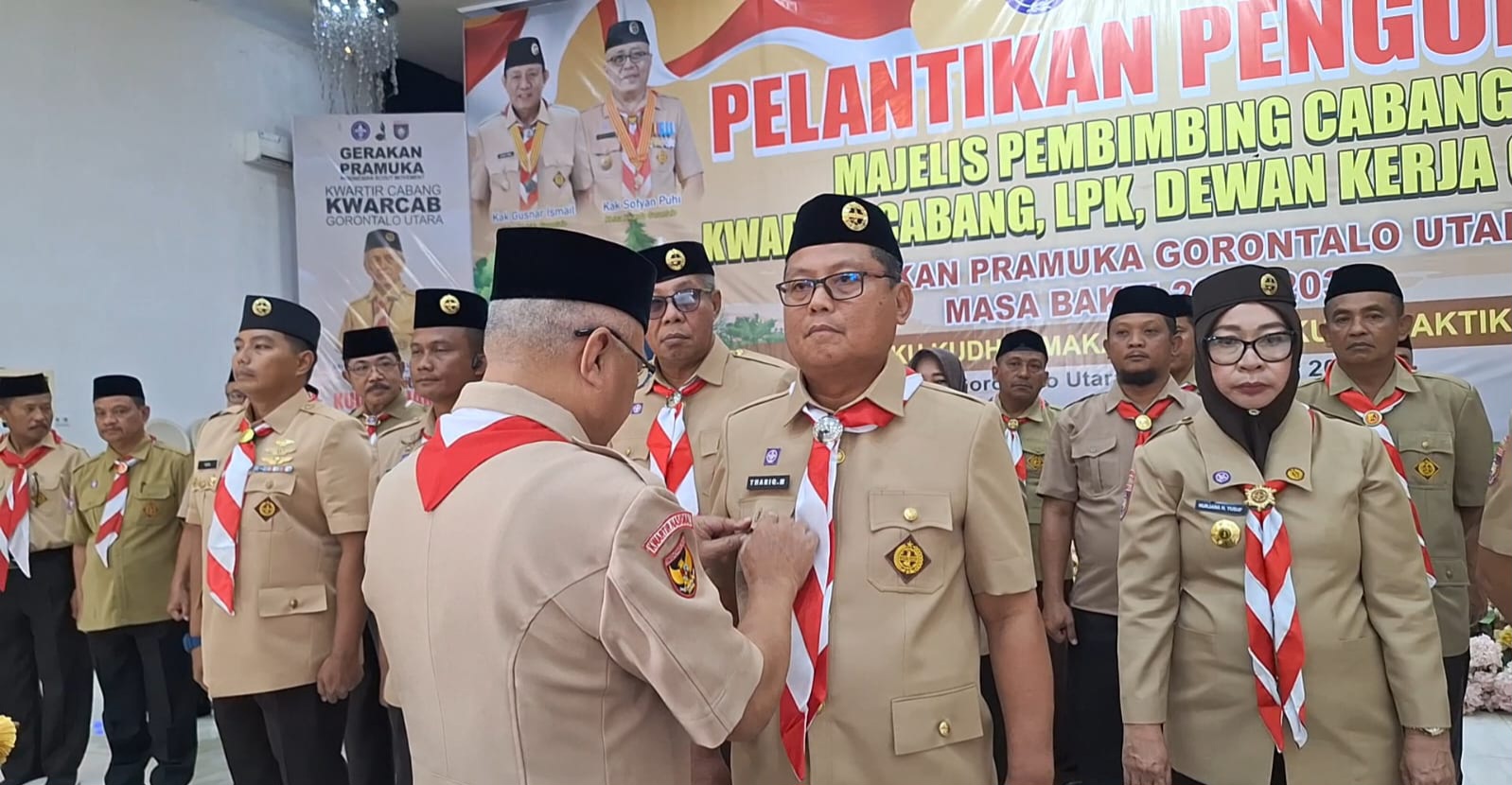 Bupati Gorontalo sekaligus Ketua Kwarda Gerakan Pramuka Provinsi Gorontalo, Sofyan Puhi, secara resmi melantik Bupati Gorontalo Utara Thoriq Modanggu sebagai Ketua Majelis Pembimbing Cabang (Kamabicab) Pramuka Gorontalo Utara untuk masa bakti 2025–2030. Acara pelantikan digelar megah di Gedung Al Indah Moluo, Kecamatan Kwandang, pada Selasa (30/12/2025), dihadiri pimpinan daerah, jajaran Pramuka, dan Ketua DPRD Provinsi Gorontalo sebagai perwakilan Mabida.