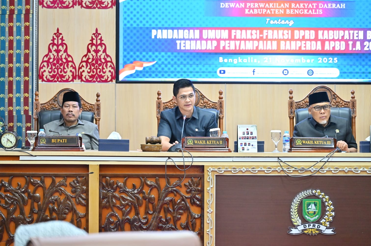 Pada kesempatan ini, tujuh fraksi DPRD Bengkalis menyampaikan pandangan umum yang pada prinsipnya menekankan pentingnya penyusunan APBD 2026 yang cermat, efisien, serta berpihak kepada kepentingan masyarakat.