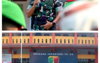 GARUDASAKTI ID – Dumai – Danrem 031/Wira Bima Brigjen TNI Dany Rakca S.A.P., M.Han., Mewakili Pangdam I/BB Mayjen TNI Mochammad Hasan, memimpin upacara pemberangkatan prajurit Batalyon Infanteri (Yonif) 131/Braja Sakti sebagai Satuan Tugas Pengamanan Perbatasan (Satgas Pamtas) RI – PNG Statis Provinsi Papua Tahun 2024 di Pelabuhan Dumai, Rabu (17/7/2024).