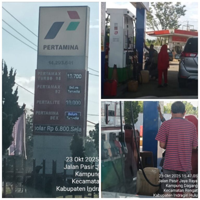 Indragiri Hulu – Praktek penimbunan solar bersubsidi yang diduga bersekongkol dengan karyawan SPBU No. 14.293.641 yang berlokasi di Danau Raja di kelurahan Kampung Dagang kecamatan Rengat kabupaten Indragiri Hulu (Inhu) provinsi Riau , kian menuai soratan apakah pertamina petra niaga sudah memberikan sanksi untuk SPBU No 14.293.641 tersebut ? Jum’at (07/11/2025).