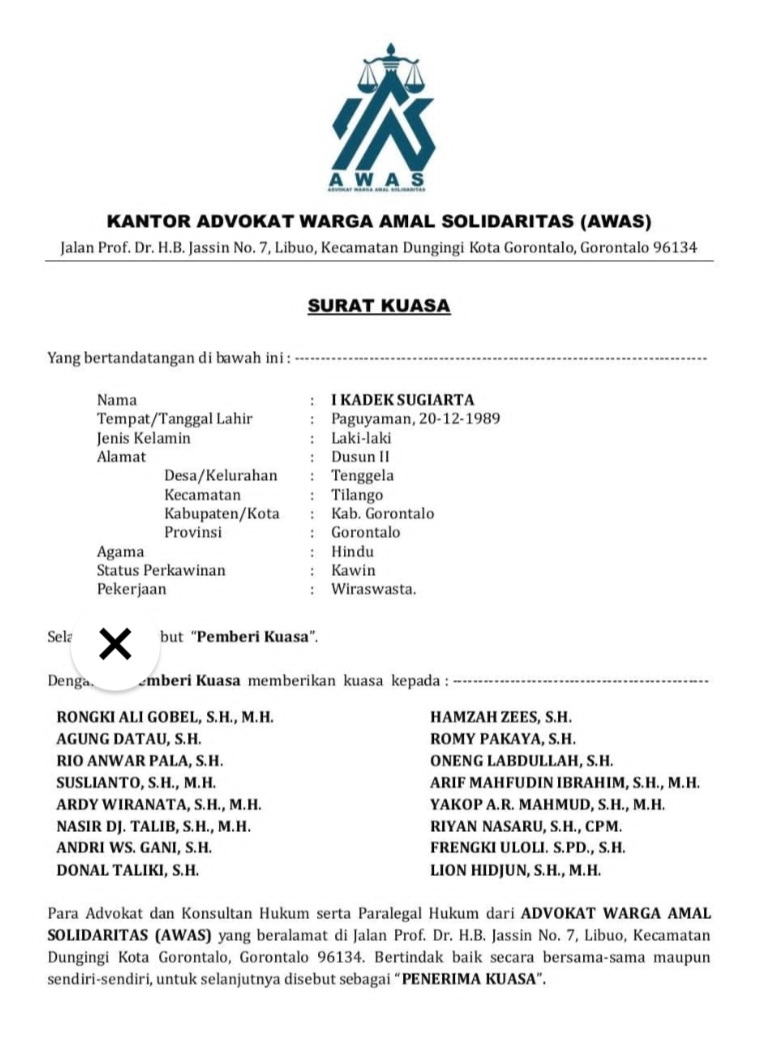 Sejumlah pengacara terbaik di Gorontalo resmi berhimpun dalam satu wadah bernama Advokat Warga Amal Solidaritas (AWAS), untuk mendampingi wartawan yang baru baru ini melaporkan seorang konten kreator ‘Ka Kuhu’ atas dugaan pengambilan foto jurnalis tanpa izin.