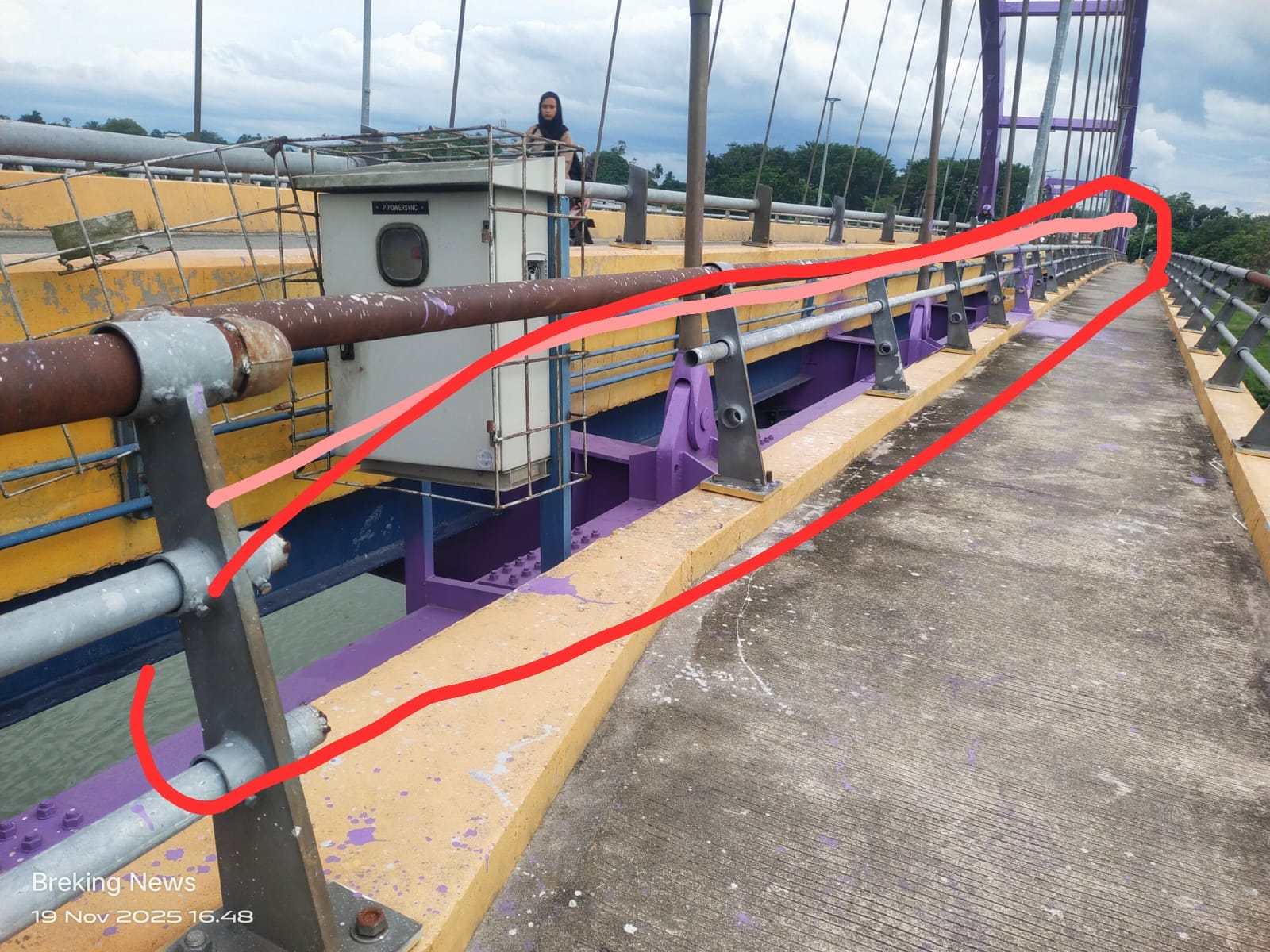 Pantauan di lokasi oleh awak media menunjukkan kondisi yang sangat mengkhawatirkan. Jalur pedestrian di sisi jembatan kini terdapat beberapa besi tanpa pengaman hilang. Setiap langkah menjadi taruhan nyawa – cukup terpeleset sedikit, pejalan kaki bisa langsung terjatuh ke bawah jembatan.