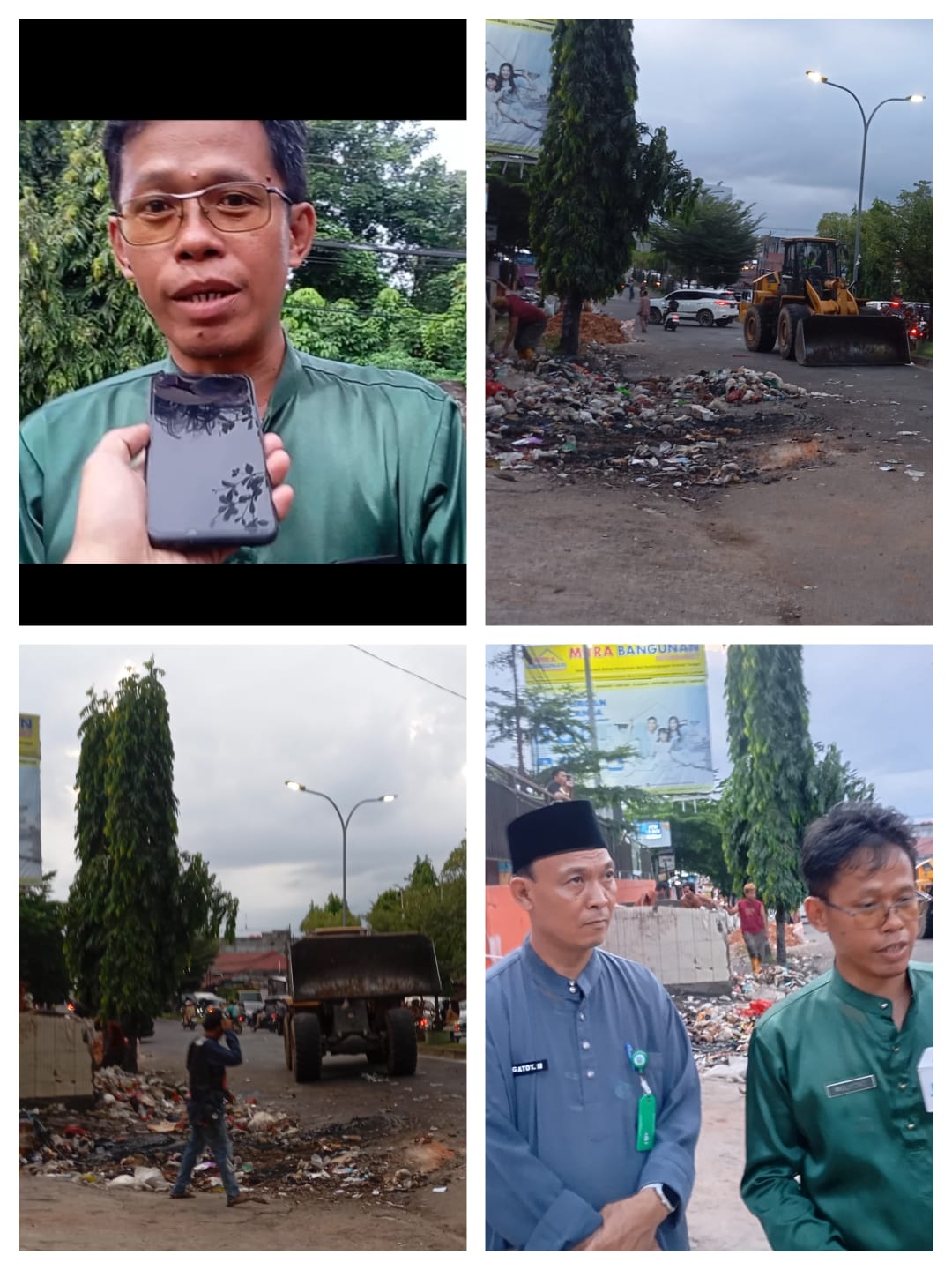 “Nah hari ini kita penuntasan sampah-sampah yang menumpuk di beberapa titik. Tadi kita sudah tuntaskan sampah di tanjung lumut sama di kebun sayur Pall merah, nah hari ini kita tuntaskan di depan mitra dengan di terminal alam berajo. Yang kita tuntaskan hari ini ada 4 titik, kemarin malam selesa itu yang banyak. “malam selasa itu sudah kita tuntaskan”. Ternyata sampah nya menumpuk lagi/kembali. Ucapnya