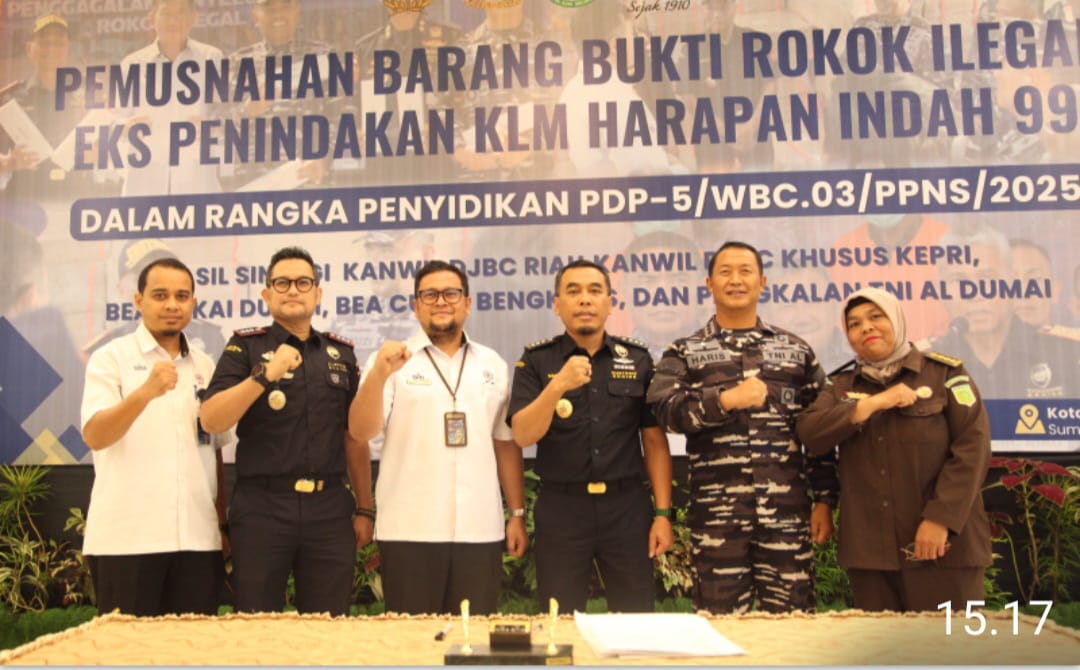 Berdasarkan Surat Penetapan Pengadilan Negeri Bengkalis Nomor 3/Pen.Pid/2025/PN.Bls tanggal 16 Oktober 2025, pemusnahan dilakukan terhadap 2.560 karton berisi 25.600.000 batang rokok ilegal, sementara 2.560 karton lainnya disisihkan sebagai barang bukti tahap dua penyidikan yang akan diserahkan kepada Kejaksaan Tinggi Riau.
