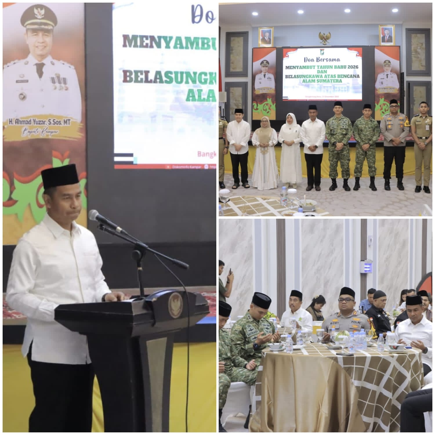 Kampar — Pemerintah Kabupaten Kampar bersama unsur Forkopimda menggelar Doa Bersama Menyambut Tahun Baru 2026 sekaligus Belasungkawa atas Bencana Alam di Sumatra, Rabu malam (31/12/2025), bertempat di Balai Bupati Kampar. Kegiatan ini berlangsung khidmat dan penuh makna sebagai bentuk refleksi akhir tahun serta solidaritas kemanusiaan.