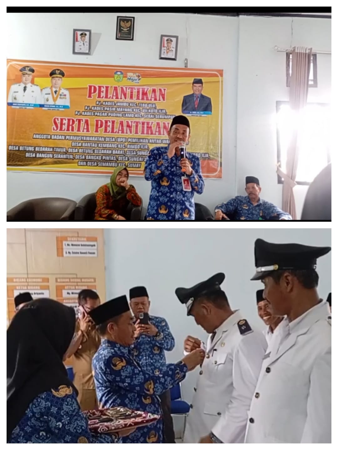 “PJ kades yang di lantik itu adalah PJ kades jambu kecamatan tebo ulu, PJ kades pasir mayang kecamatan 7 Koto ilir, Pj kades pagar puding Lamo kecamatan serai serumpun dan ada beberapa anggota BPD yang mengikuti pelantikan antar waktu (PAW) anggota BPD ada dari 4 kecamatan yaitu, kecamatan Rimbo ilir, tebo ilir, muara tabir dan sumay.