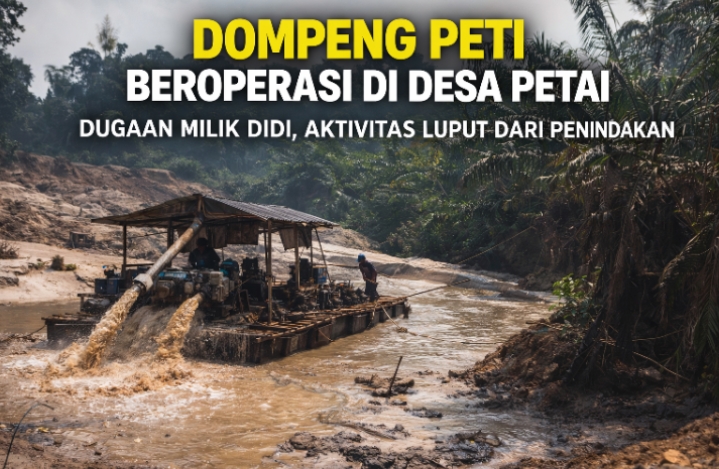 Kuantan Singingi – Aktivitas Penambangan Emas Tanpa Izin (PETI) kembali mencuat di Kabupaten Kuantan Singingi, Provinsi Riau. Pada Kamis (2/4/2026), terpantau sedikitnya dua unit alat dompeng masih beroperasi di wilayah Desa Petai, Kecamatan Singingi Hilir, Kabupaten Kuansing.