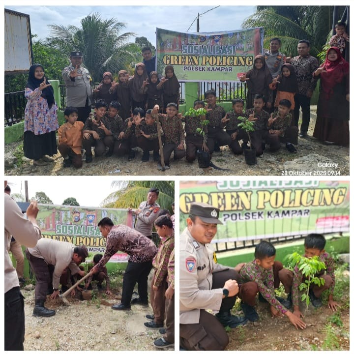Kampar – Semangat Green Policing terus digelorakan Bhabinkamtibmas Polsek Kampar Bripka Riski Suhendro, SH, dengan menyambangi UPT.SD NEGERI 017 KAMPAR Desa Ranah Singkuang Kec. Kampar, Kamis (23/10/2025).