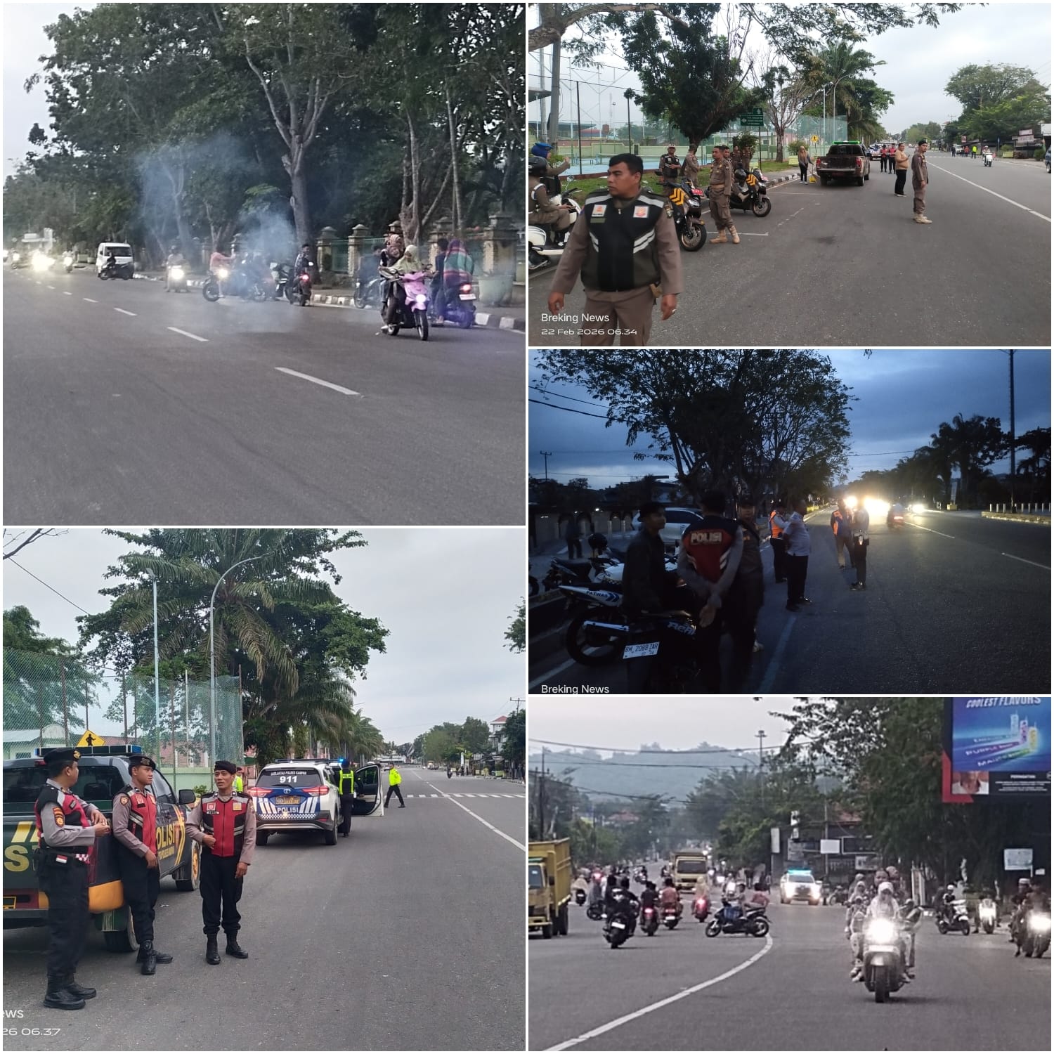 Sejak pukul 05.59 WIB, petugas sudah bersiaga di tepi Jalan Ahmad Yani. Sejumlah kendaraan roda dua yang melintas menjadi perhatian, khususnya kelompok remaja yang terlihat berkumpul di beberapa sudut kota.