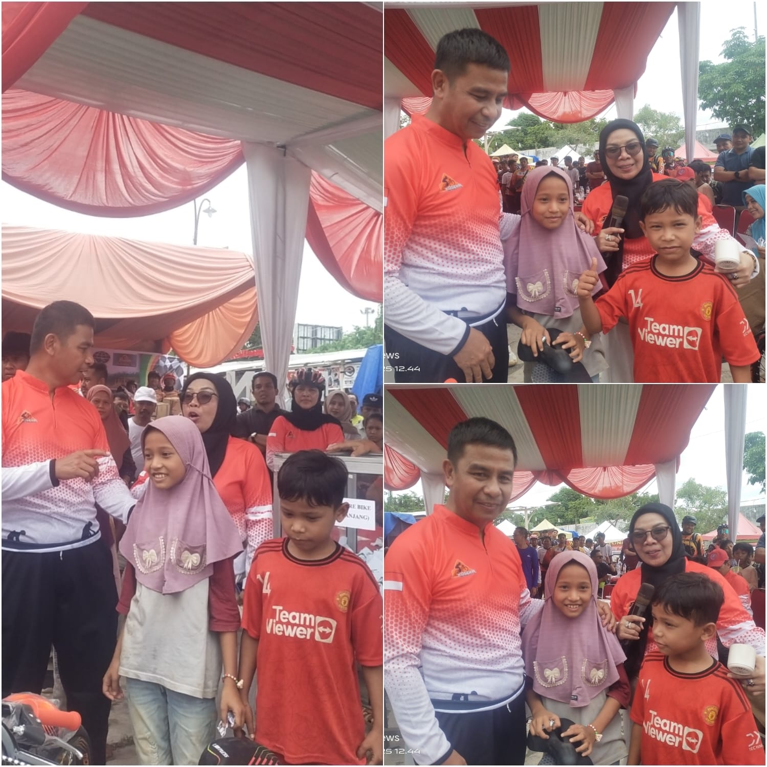 Namun, dari ribuan peserta itu, perhatian publik justru tertuju pada dua bocah kakak beradik inspiratif, Gibran Azwi (9) dan Najuwa Azwi (10) — siswa-siswi SDN 003 Bangkinang, anak pertama dan kedua dari pasangan Azriwal dan Wiwit Asmita, warga RT 08 RW 03 Jalan Datuk Tabano, Bangkinang Kota.