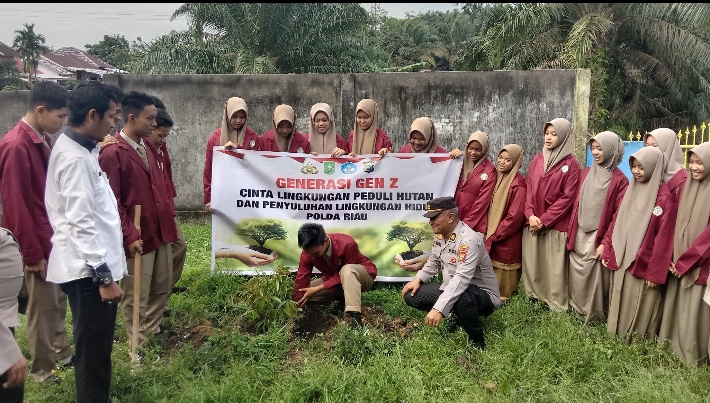 KAMPAR – Polres Kampar terus menggencarkan program Green Policing yang dicanangkan oleh Kapolda Riau. Kali ini, sasaran sosialisasi adalah siswa-siswi MAN 2 Kampar. Kegiatan yang dilaksanakan pada Selasa (07/10/2025) ini tidak hanya diisi dengan penyampaian materi, tetapi juga aksi nyata berupa penanaman bibit pohon.