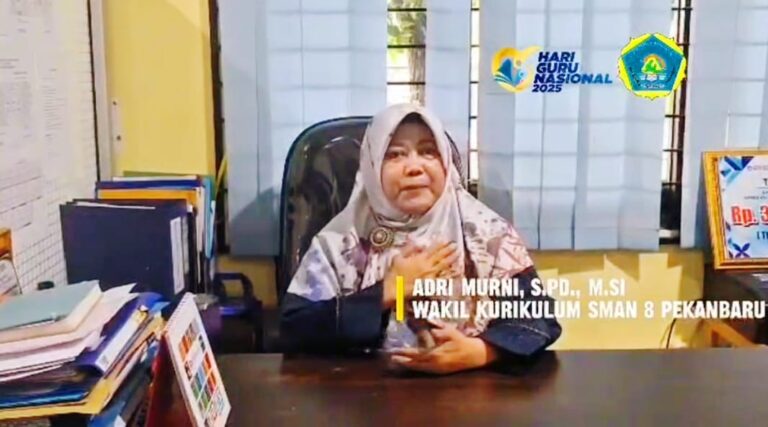Ibu Andri Murni, S.Pd., M.Si., wakil kurikulum SMA Negeri 8 Pekanbaru, mengatakan, “Dunia boleh saja berubah, tapi peranan kita sebagai pendidik tidak akan pernah tergantikan”, selamat Hari Guru 2025.