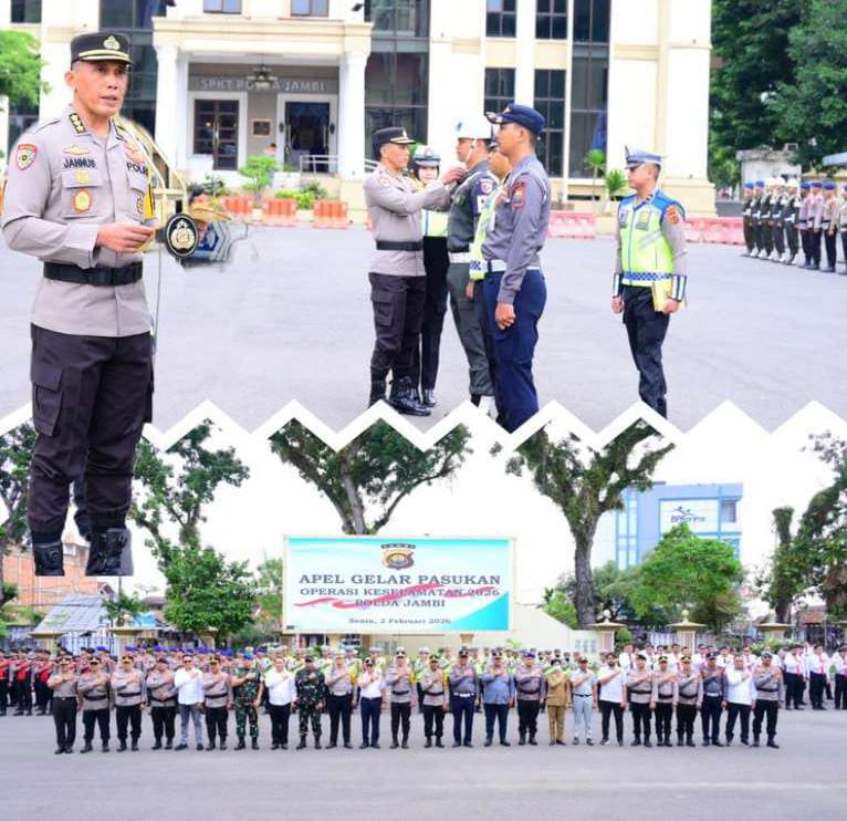 “Dengan memanjatkan puji syukur ke hadirat Tuhan Yang Maha Esa, Operasi Keselamatan 2026 Polda Jambi saya nyatakan dimulai,” tegasnya.