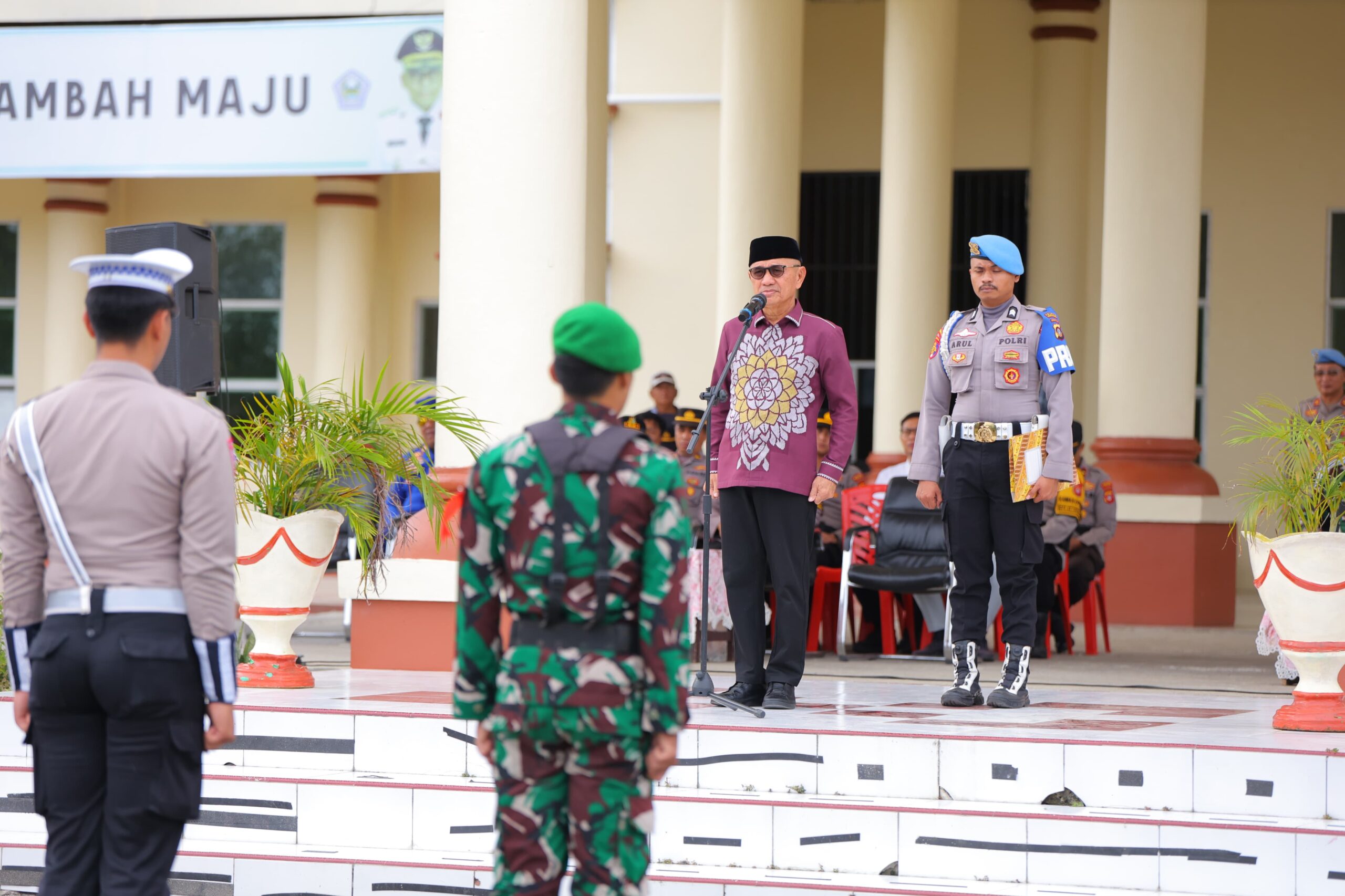 Bupati Pohuwato membacakan amanat Kapolri Listyo Sigit Prabowo menegaskan bahwa apel gelar pasukan merupakan bentuk pengecekan kesiapan personel maupun sarana dan prasarana, sekaligus wujud komitmen dan sinergisitas lintas sektor dalam rangka menyukseskan Operasi Ketupat 2026.