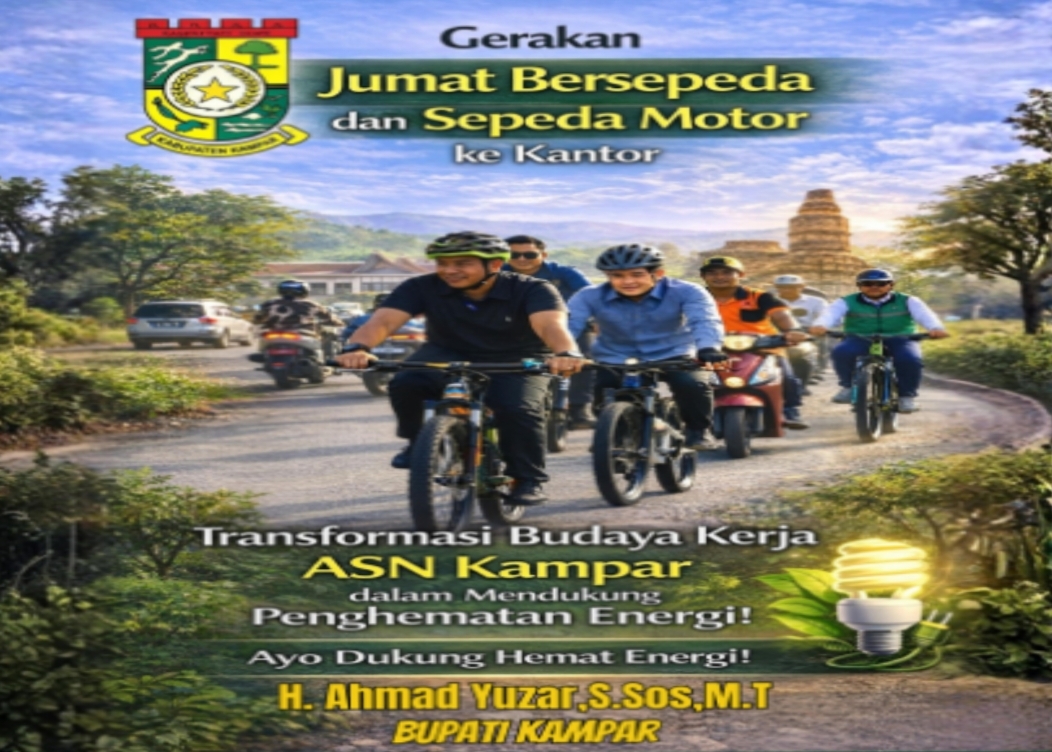 KAMPAR – Pemerintah Kabupaten Kampar kembali menggulirkan gerakan positif yang tak hanya menyehatkan tubuh, tetapi juga menyelamatkan energi. Melalui program “Gerakan Jumat Bersepeda dan Sepeda Motor ke Kantor”, para Aparatur Sipil Negara (ASN) diajak meninggalkan kebiasaan lama dan beralih ke gaya hidup yang lebih ramah lingkungan. Pada Jum’at (10/4/26)