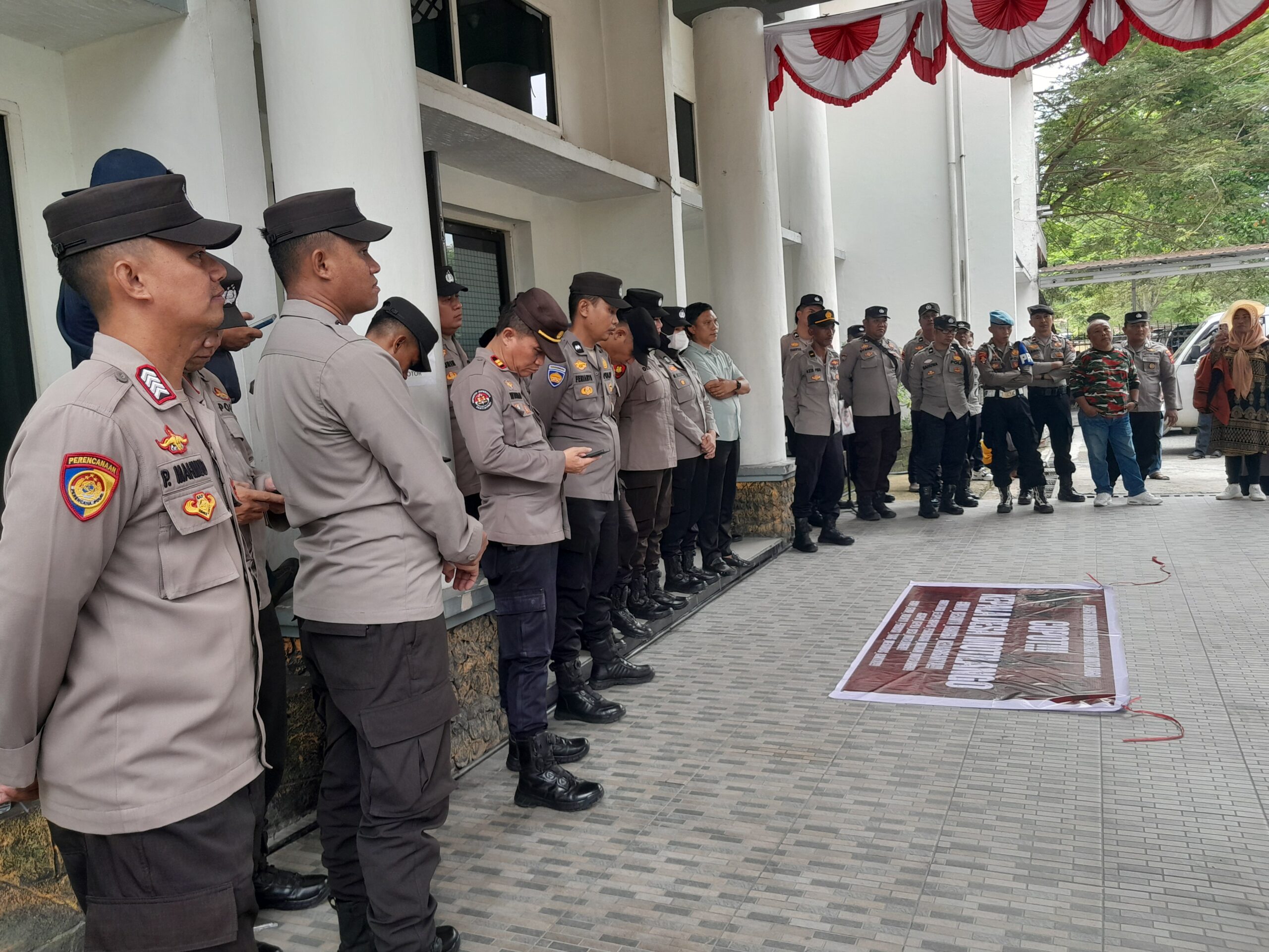 Kompol Ismet Yusuf didampingi Kasat Intel Iptu Suprato SIP, Kasat Sabhara AKP Yumus Miradji, Kasie Humas Iptu Wawan Suryawan, serta PA Siaga Ipda Aziz Pidu beserta anggota, memastikan keamanan dan mendokumentasikan aspirasi warga di lokasi.