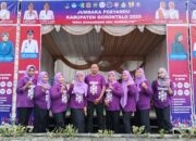 Kepala Desa (Kades) Limehe Barat, Kecamatan Tabongo, Ridwan Mustapa Ismail, S.A.P., bersama Ketua Tim Penggerak PKK Ny. Karsum Kadir dan Sekretaris Desa (Sekdes) Ewin S. Alinti, aktif meriahkan Jumbara Posyandu tingkat Kabupaten Gorontalo, Minggu (14/12/2025).