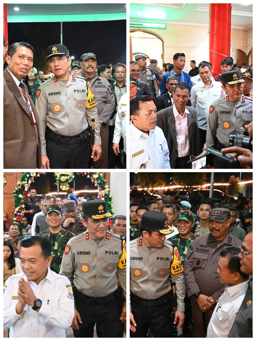 Dalam peninjauannya, Kapolda Jambi Irjen Pol Krisno H. Siregar bersama Gubernur Al Haris dan Forkompimda turut menyapa para jemaat yang melaksanakan ibadah Natal dan menyampaikan bahwa kedatangan dirinya untuk menjamin rasa aman dan nyaman saat melaksanakan ibadah.