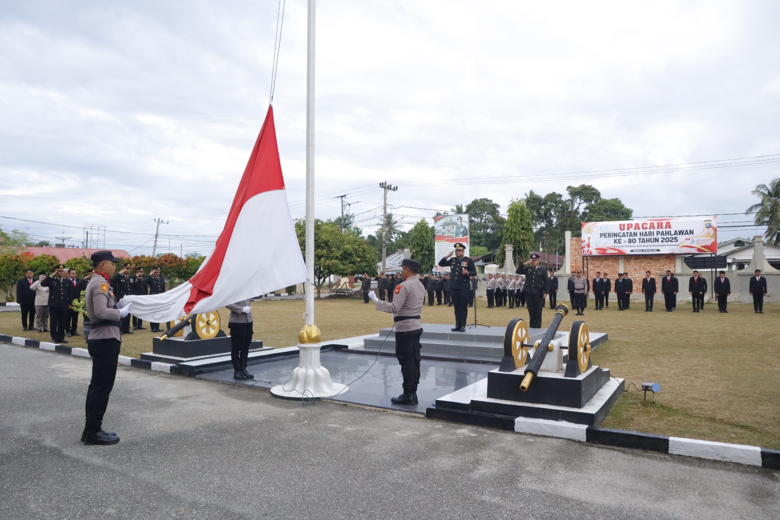 Kampar,- Polres Kampar menggelar upacara dalam rangka Peringatan Hari Pahlawan Ke 80 Tahun 2025, yang berlangsung di Lapangan Mapolres Kampar, Senin 10 November 2025, pukul 08.00 WIB.