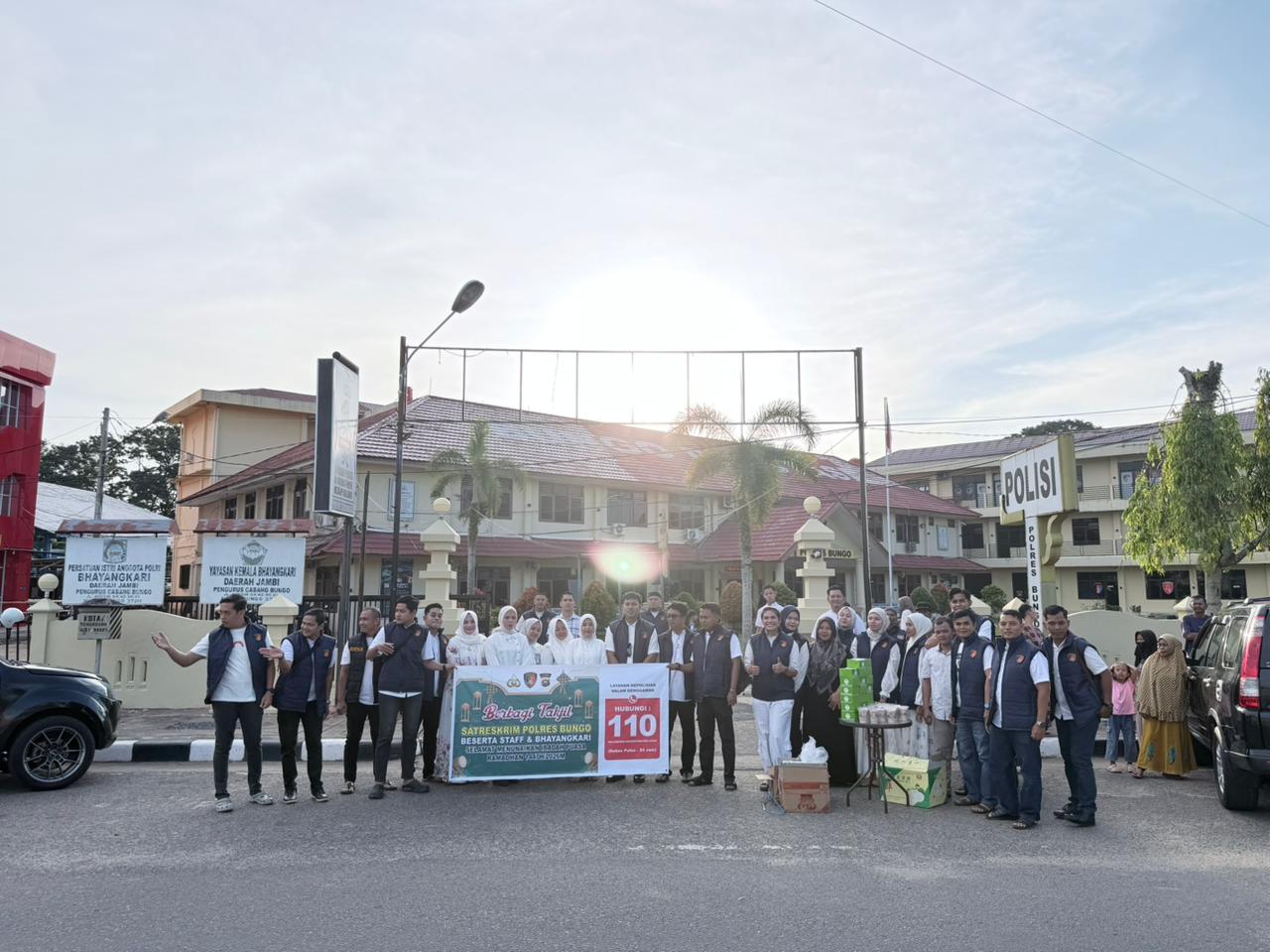 Kegiatan yang dimulai pukul 16.30 WIB hingga selesai tersebut dipusatkan di depan Mapolres Bungo. Aksi sosial ini dipimpin langsung oleh Kasat Reskrim Polres Bungo bersama personel Satreskrim yang turut ambil bagian dalam pembagian takjil kepada para pengguna jalan dan warga sekitar.