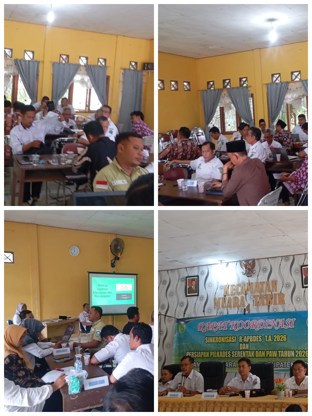 Tebo – Pemerintah Kecamatan muara tabir bersama kepala desa dan beberapa staff anggota desa menggelar kegiatan rapat koordinasi sinkronisasi r-apbdes t.a 2026 persiapan pilkades serentak dan paw tahun 2026 kabupaten tebo, provinsi jambi, tepatnya di aula kantor camat, pada hari rabu 14 Januari 2026.