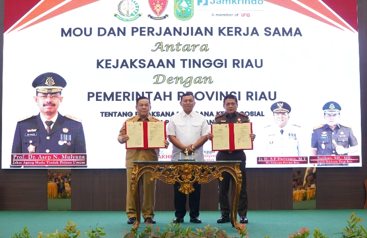 Riau – Kejaksaan Tinggi Riau melakukan penandatanganan MoU dan juga perjanjian kerjasama dengan Pemerintah Provinsi Riau tentang pelaksanaan pidana kerja sosial bagi pelaku pidana, bertempat di Sasana H.M Prasetyo, Gedung Satya Adhi Wicaksana Kejaksaan Tinggi Riau, Kota Pekanbaru, Provinsi Riau. Selasa 2 Desember 2025.