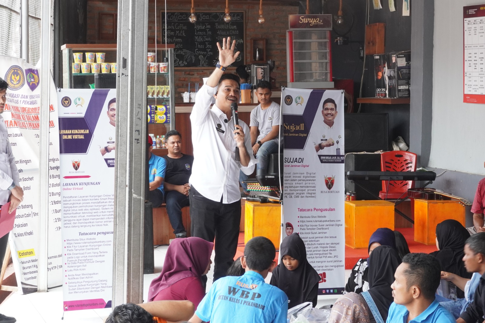 Pekanbaru – Kepala Rumah Tahanan Negara (Rutan) Kelas I Pekanbaru, Erwin Siregar, melaksanakan sosialisasi program SUJADI (Surat Jaminan Digital) kepada warga binaan serta keluarga warga binaan pada kegiatan kunjungan, sebagai bagian dari implementasi Proyek Perubahan dalam Pelatihan Kepemimpinan Administrator (PKA).