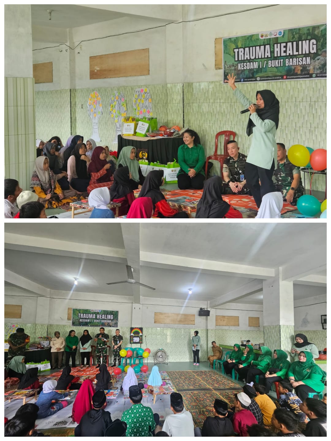 Kegiatan tersebut dilaksanakan Kesdam I/BB bersama Persit Kartika Chandra Kirana (KCK) Ranting 5 Kesehatan Cabang IV PD I/BB sebagai bentuk kepedulian TNI terhadap pemulihan kesehatan mental dan psikososial anak-anak pascabencana.