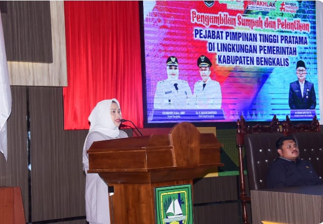 BENGKALIS – Bupati Bengkalis Kasmarni mengambil sumpah jabatan dan pelantikan Pejabat Pimpinan Tinggi Pratama (PPTP) di lingkungan Pemerintah Kabupaten Bengkalis, Jumat 21 November 2025 di ruang Dang Merdu lantai IV Kantor Bupati Bengkalis.