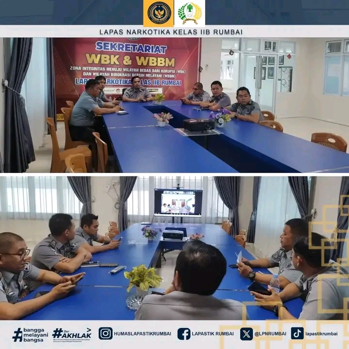 Pekanbaru – Lapas Narkotika Kelas IIB Rumbai turut serta mengikuti pengarahan yang disampaikan oleh Kepala Kantor Wilayah Direktorat Jenderal Pemasyarakatan Riau terkait agenda penanaman pohon kelapa serentak di seluruh jajaran pemasyarakatan. Kegiatan pengarahan ini bertujuan untuk memberikan pemahaman sekaligus menyatukan langkah dalam mendukung program penghijauan serta pemanfaatan lahan yang berkelanjutan di lingkungan pemasyarakatan. Kegiatan diikuti oleh Pejabat Struktural Lapas Narkotika Rumbai mengikuti secara Virtual. Senin (08/09/2025).