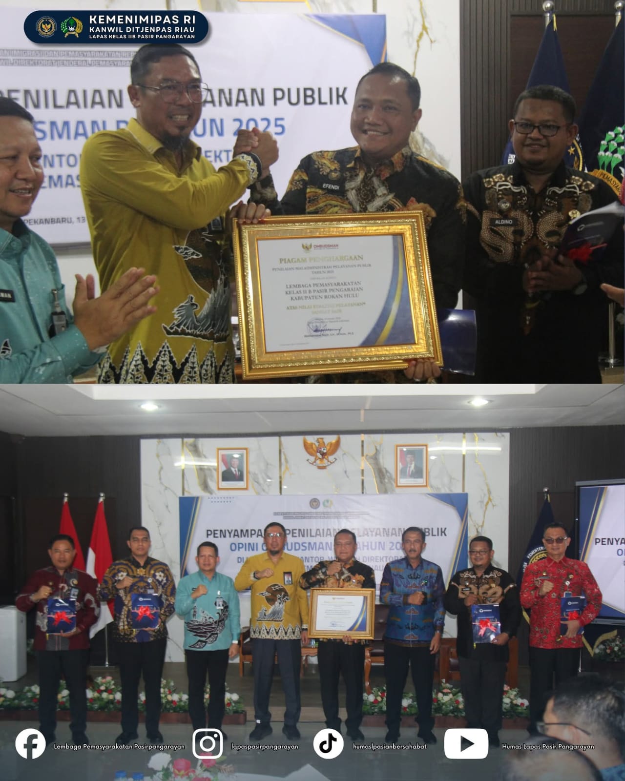 Lapas Pasir Pangarayan Raih Nilai “Sangat Baik” dalam Penilaian Maladministrasi Pelayanan Publik 2025 dari Ombudsman RI Perwakilan Riau