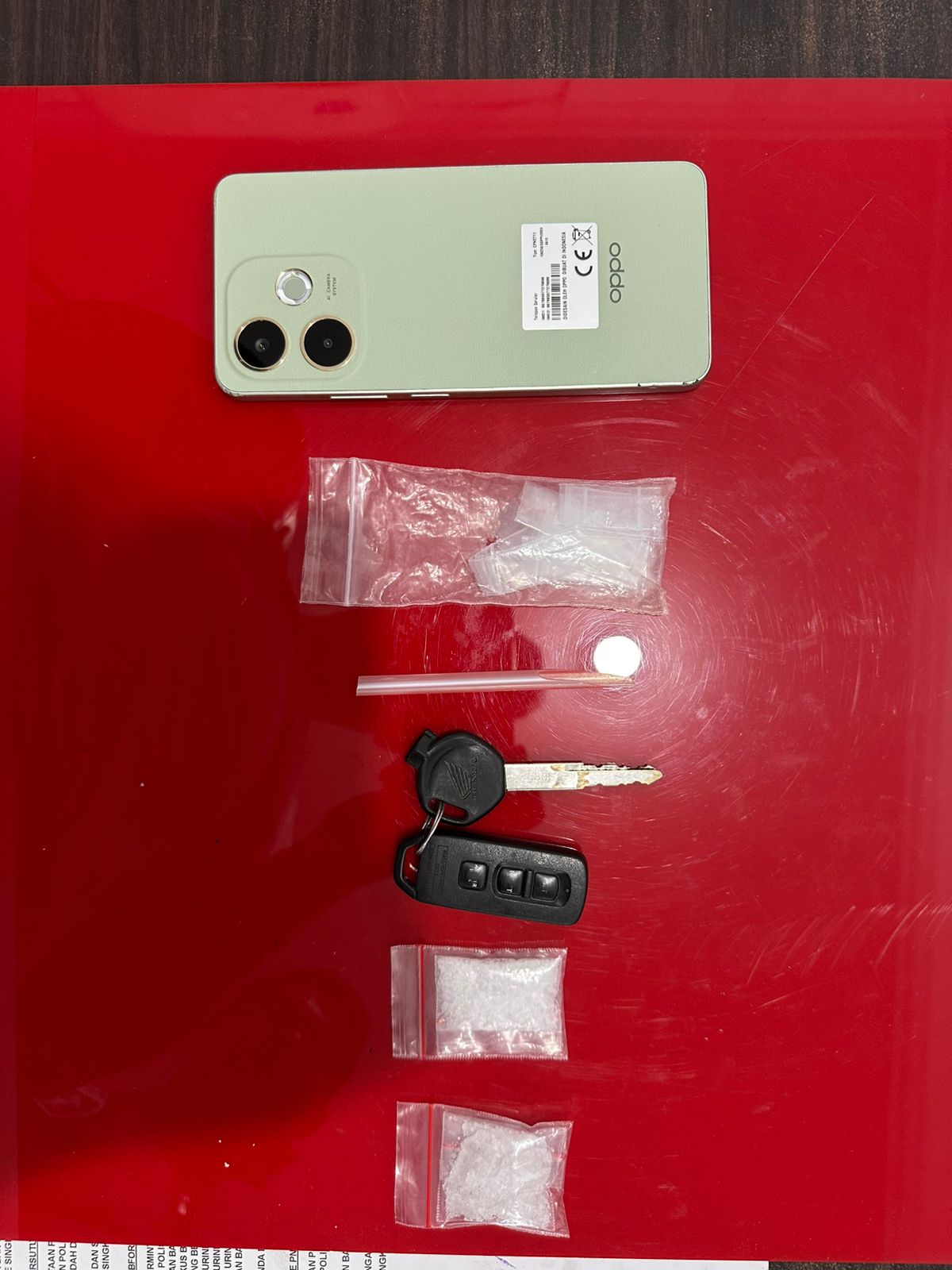 Selain itu, turut diamankan satu pack plastik klip kosong, satu sendok yang terbuat dari pipet plastik, satu unit telepon genggam Android merek OPPO warna hijau muda, serta satu unit sepeda motor Honda Scoopy tanpa nomor polisi.