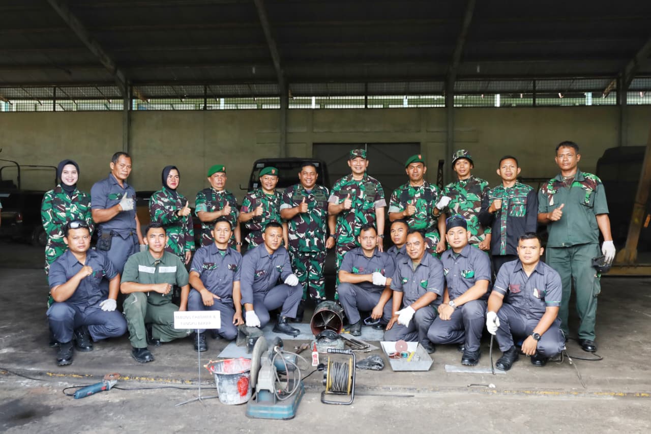 Setibanya di lokasi, Pangdam I/BB menerima hormat jajar sebelum menuju area workshop untuk meninjau tahapan pengerjaan. Di tempat tersebut, Kapaldam I/BB, Letnan Kolonel Haris Waskito, S.E., memberikan penjelasan terkait proses pembuatan, spesifikasi teknis, serta mekanisme kerja alat incinerator yang dirancang untuk pengolahan limbah secara efektif dan aman.