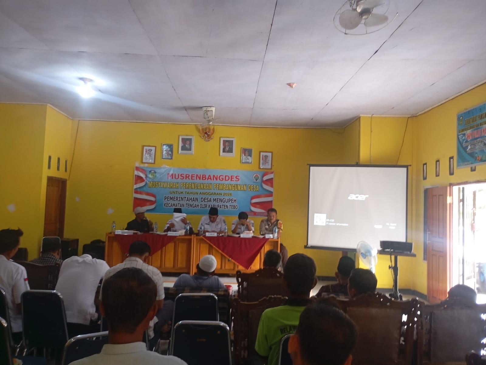 Tebo – Pada hari rabu 03 september 2025 pemerintah desa mengupeh melaksanakan kegiatan musyawarah perencanaan pembangunan desa tahun 2026 di aula kantor desa mengupeh, kecamatan tengah ilir, kabupaten tebo, provinsi jambi.