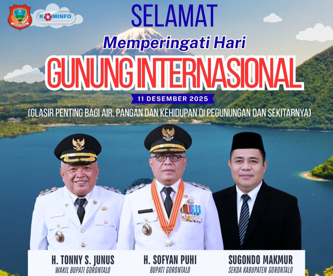 Bupati Kabupaten Gorontalo, Sofyan Puhi, didampingi Wakil Bupati Gorontalo, Tony Yunus dan Sekretaris Daerah Kabupaten Gorontalo, Sugondo Makmur pada Hari Gunung Internasional 2025 Rabu kemarin menegaskan komitmennya dalam menjaga kelestarian pegunungan sebagai sumber kehidupan bagi masyarakat lokal dan daerah sekitarnya.