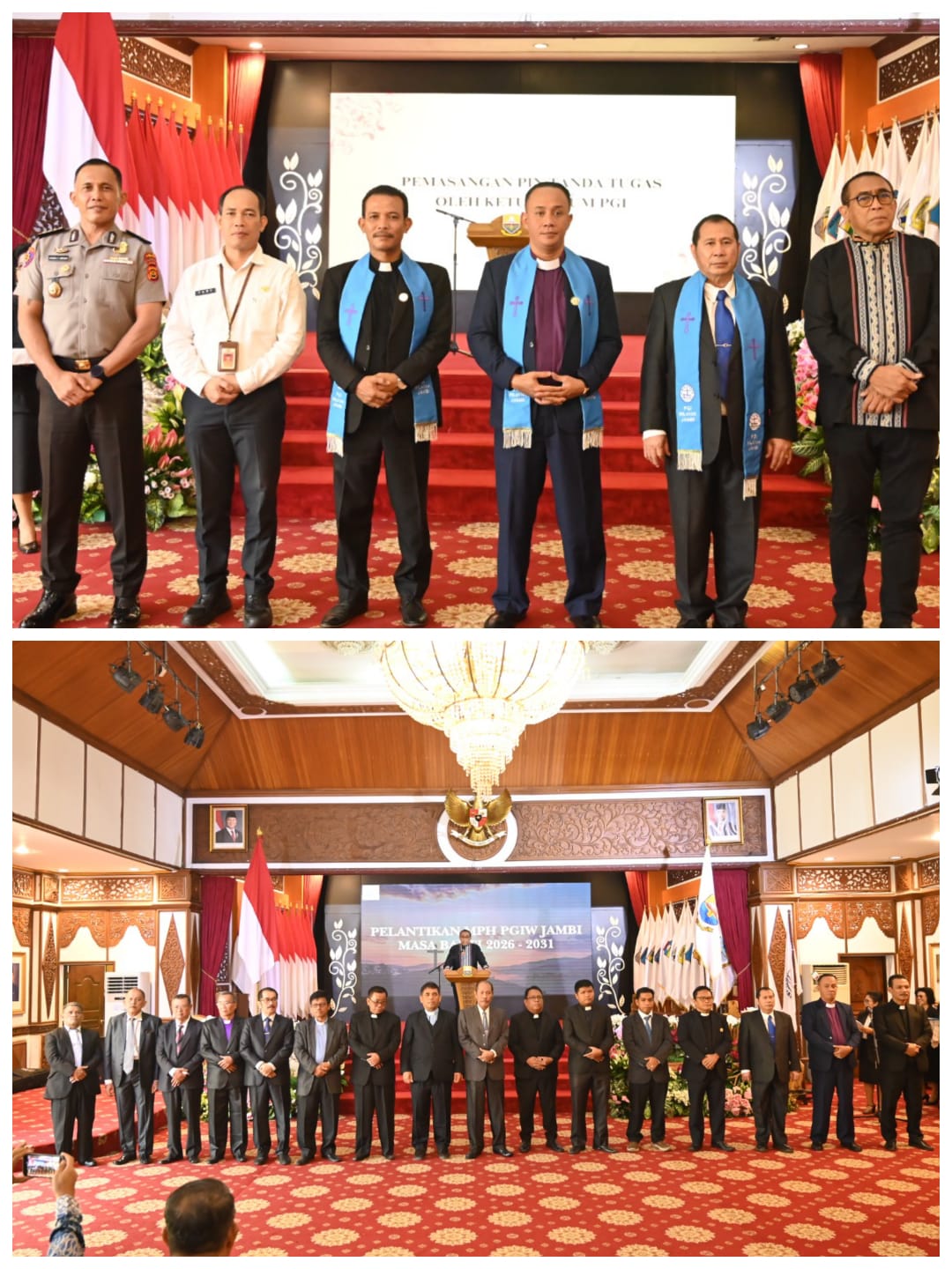 Rangkaian kegiatan diawali dengan ibadah singkat, dilanjutkan dengan menyanyikan lagu kebangsaan Indonesia Raya dan Mars PGI, serta pembacaan Surat Keputusan kepengurusan PGIW Jambi masa bakti 2026–2031. Dalam kepengurusan baru tersebut, Pdt. Kamson R.A. Pasaribu, M.Th dipercaya sebagai Ketua Umum, didampingi Sekretaris Umum Pdt. James Roy Sitanggang, S.Th., M.Min., dan Bendahara Umum Dr. dr. Sabar Hutabarat, Sp.A., M.Kom.