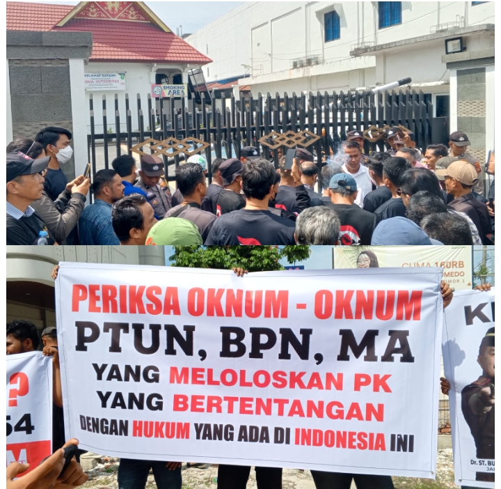 Massa juga mendesak Kejaksaan Agung RI dan Komisi Pemberantasan Korupsi (KPK) segera turun tangan menyelidiki dugaan keterlibatan oknum di PTUN, BPN, hingga Mahkamah Agung (MA) dalam meloloskan PK bermasalah tersebut.
