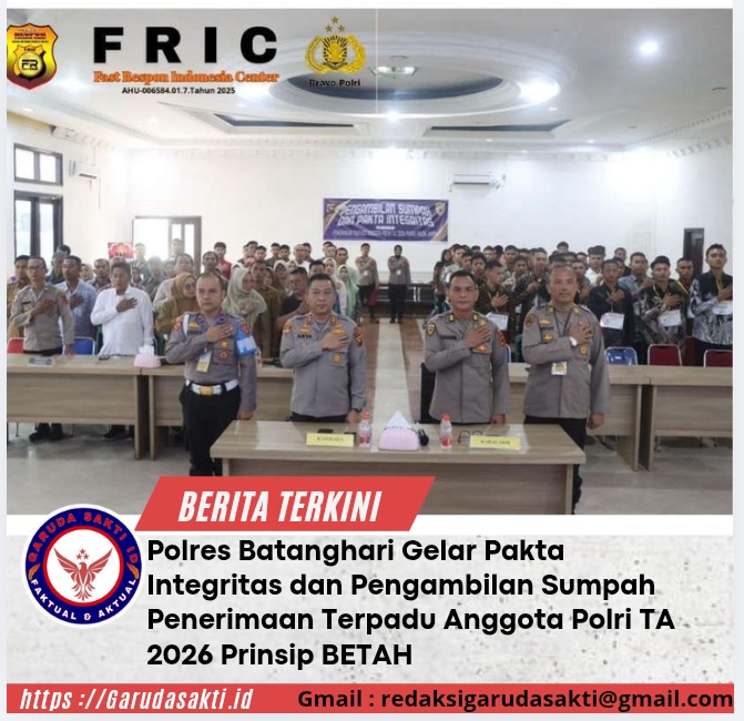 JAMBI – Kepolisian Resort (Polres) Batanghari melaksanakan kegiatan Pakta Integritas dan Pengambilan Sumpah dalam rangka Penerimaan Terpadu Anggota Polri Tahun Anggaran 2026 Panda Polda Jambi Polres Batanghari dengan prinsip BETAH (Bersih, Transparan, Akuntabel dan Humanis), Pada selasa (31/03/2026).