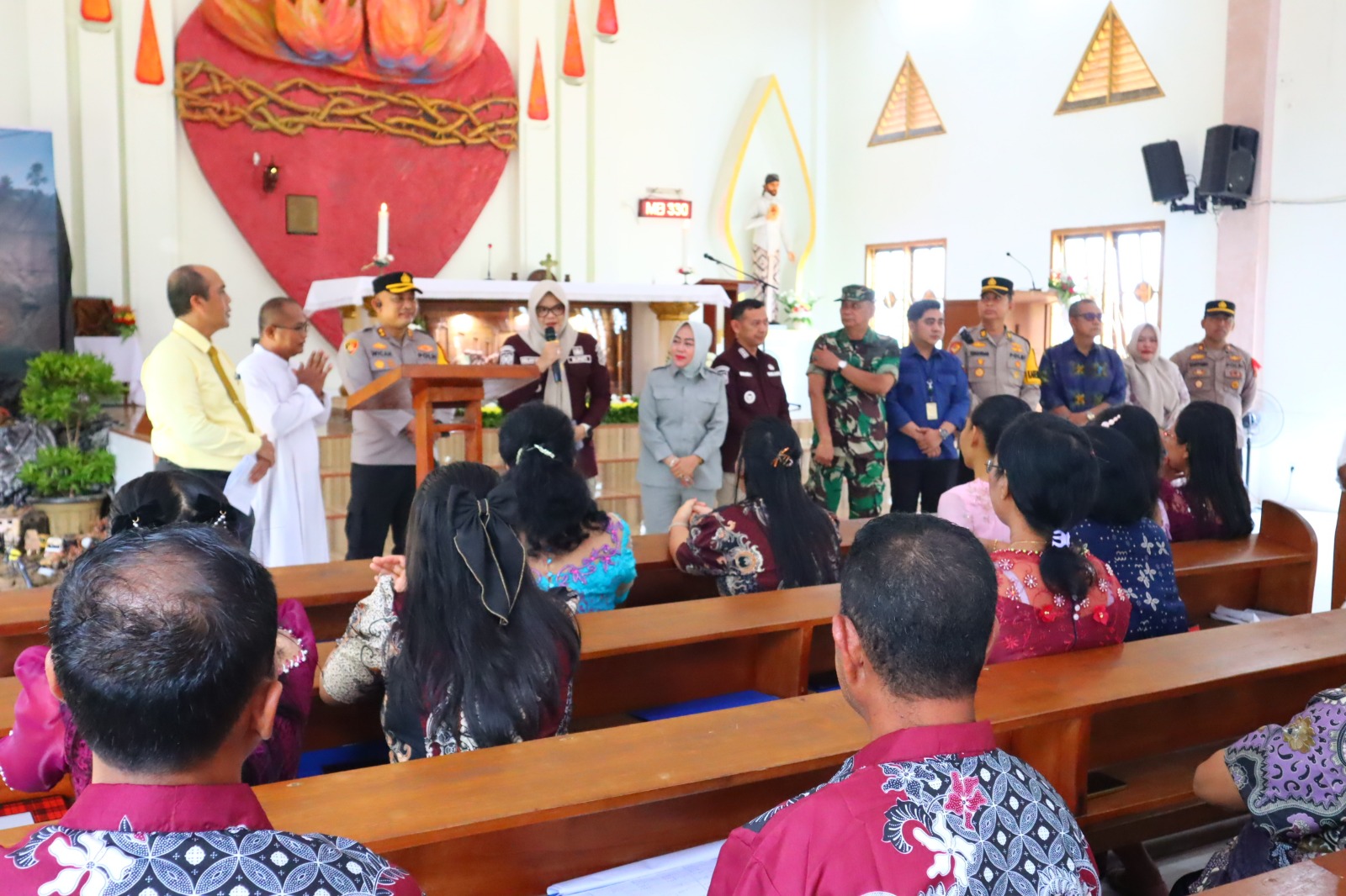 Tanjung Jabung Timur – Dalam upaya memastikan keamanan dan kelancaran perayaan Natal 2025 – Tahun Baru 2026 (Nataru), Kapolres Tanjab Timur Akbp M. Kuswicaksono, S.I.K., M.H. bersama Bupati Tanjung Jabung Timur Ibu Hj. Dila Hikmah Sari, S.T., Wakil Bupati Tanjung Jabung Timur Muslimin Tanja, S.Th.I., M.Si., Ketua DPRD Tanjung Jabung Timur Zilawati, S.H., Dandim 0419/Tanjab diwakili Pabung Kodim 0419/Tanjab Mayor Inf.Ahamd Riad,S.,Ag. lakukan peninjauan Pos Pengamanan (Pos Pam) Geragai, Pos Pelayanan (Pos Yan) Muara Sabak Barat Ops Lilin 2025 dan Gereja Katholik Santo Thomas di Kecamatan Geragai Kabupaten Tanjab Timur, Kamis (25/12/2025).