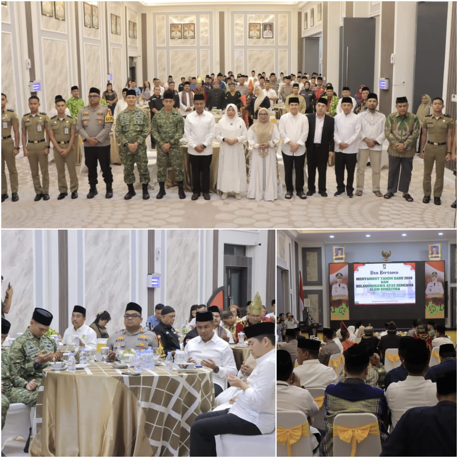Kampar – Dalam rangka menyambut Tahun Baru 2026 sekaligus sebagai wujud empati dan kepedulian terhadap korban bencana alam di wilayah Sumatra, Polres Kampar bersama unsur Forkopimda Kabupaten Kampar mengikuti kegiatan Doa Bersama Akhir Tahun yang digelar di Balai Bupati Kampar, Rabu malam (31/12/25).