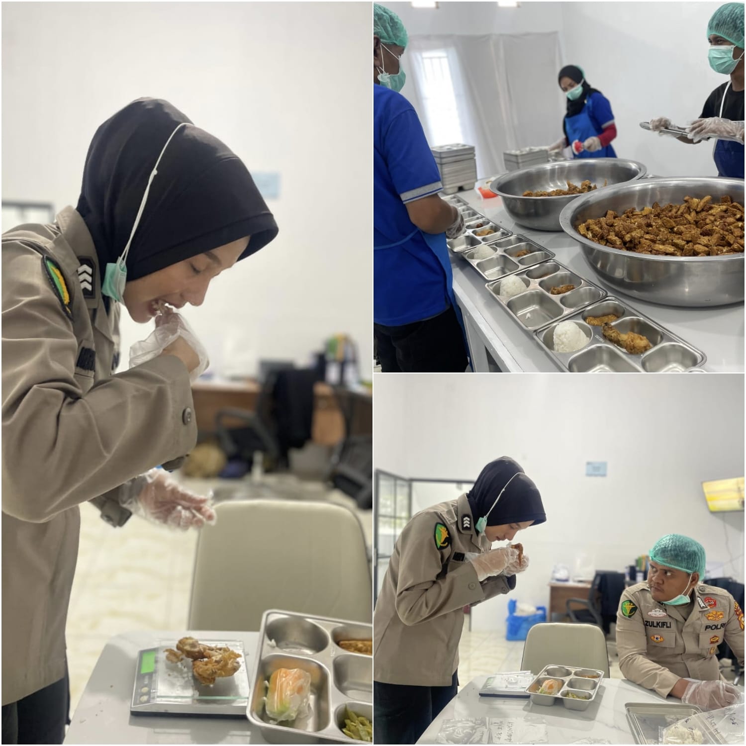 “Total porsi hari ini sebanyak 2844 porsi, dan dari hasil pemeriksaan organoleptik, semua makanan dan minuman laik dikonsumsi,” jelas Bripka Indra Gunawan.