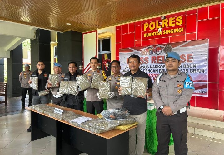 KUANTANSINGINGI,– Satuan Reserse Narkoba Polres Kuantan Singingi kembali menegaskan komitmennya dalam memberantas peredaran narkotika. Dalam sebuah Press Release yang digelar Polres Kuansing mengungkap kasus peredaran narkotika jenis daun ganja kering dengan total barang bukti bruto seberat 22.535 gram, sekira pukul 08.30 WIB. Kamis, (5/2/2026).