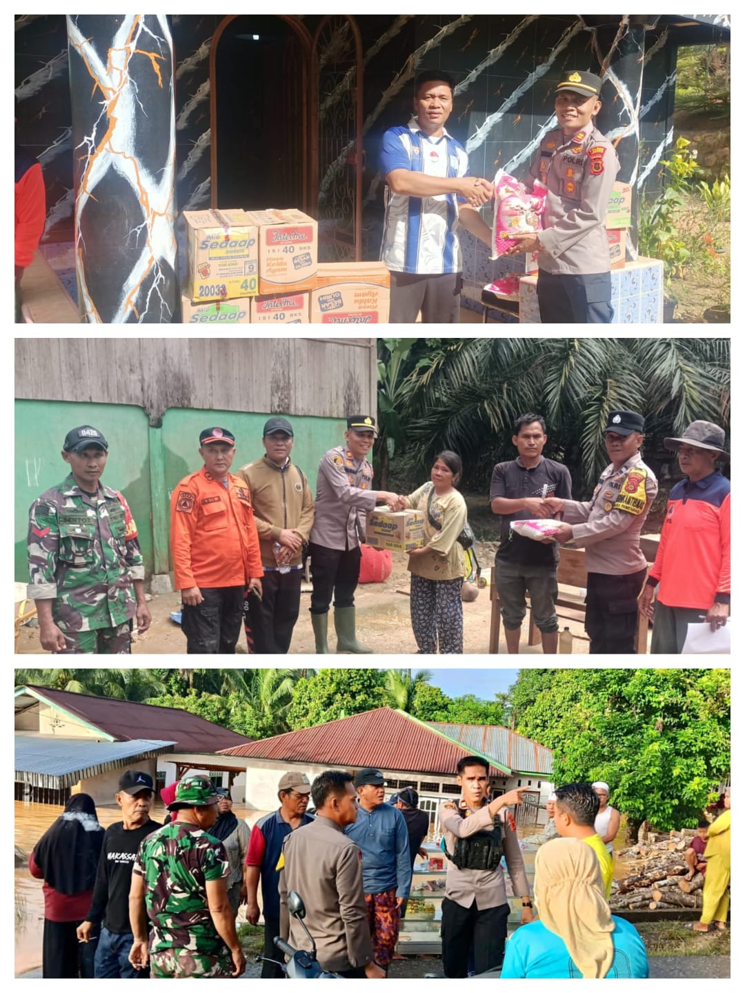 “Polres Sarolangun bersama TNI, BPBD, dan Dinas Sosial telah melakukan berbagai upaya penanganan seperti patroli, pendirian tenda darurat, distribusi bantuan, serta membantu warga membersihkan rumah pasca banjir,” ujar Kabid Humas
