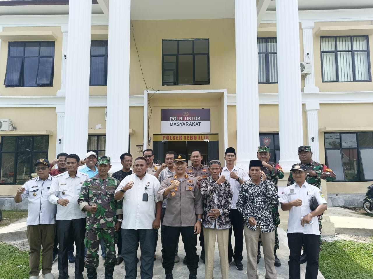 Tebo – Polsek Tebo Ilir Bersama Koramil Dan Forkopincam Berikan Himbauan menggelar Kegiatan pertemuan tatap muka dengan seluruh para Kades dalam kecamatan Tebo Ilir, kegiatan skala pengumpulan masa menjelang pelaksanaan Pilkades serentak tahun 2026 di kecamatan Tebo Ilir, kabupaten Tebo, Jambi, bertempat diaula polsek tebo ilir, pada hari rabu (15/04/2026).